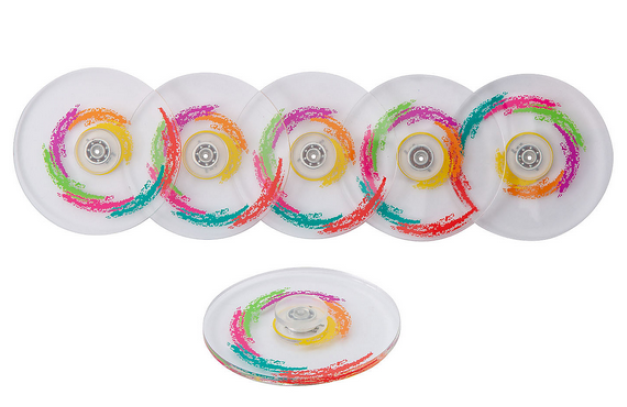 These fidget spinners sit and spin atop your finger for hours of amusement. When spun, they create a colorful pattern that makes an animated design while in motion. Perfect for the theme Color Our World! Spin while you walk for an extra brain challenge! These are made of plastic and measure 3 1/4″ diameter. They are sold in packages of 12.