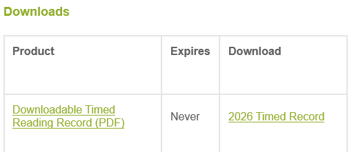 Downloadable Timed Reading Record (PDF)