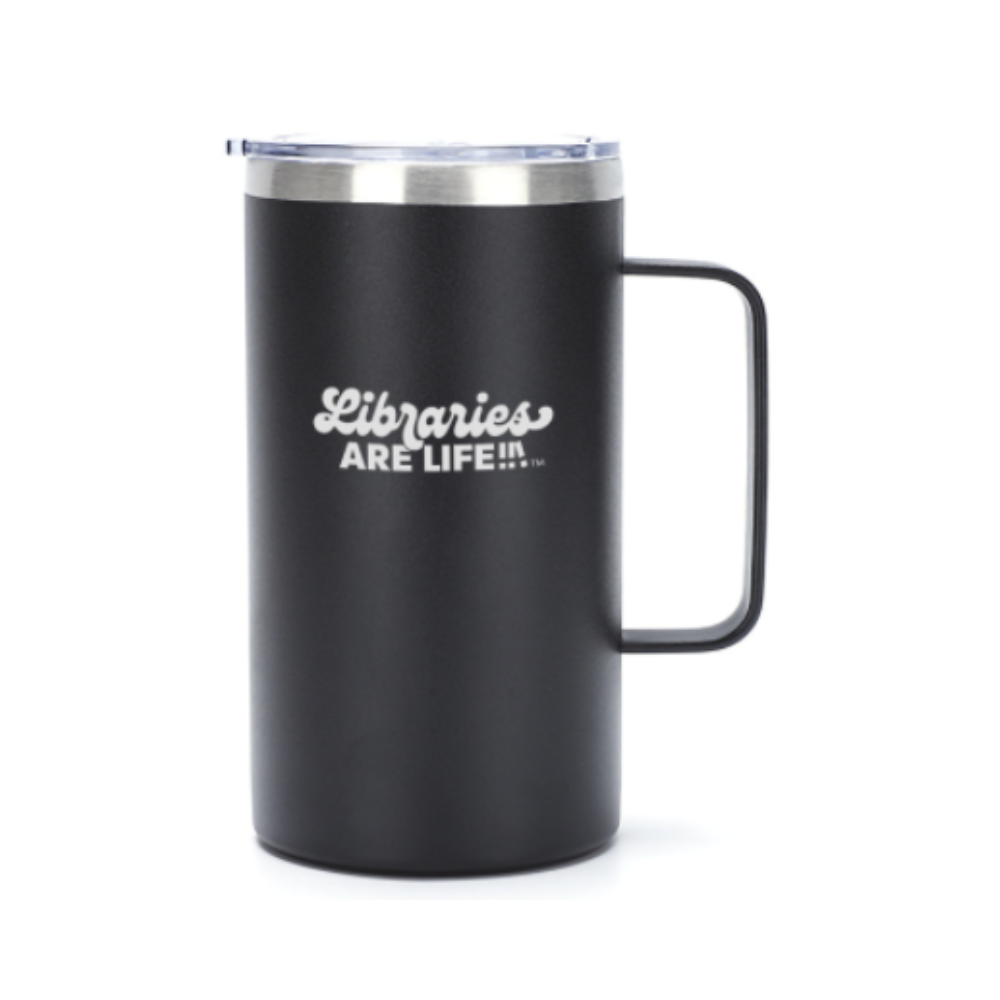 This insulated 20 oz. tumbler makes a great gift for any library staff, volunteer, trustee or just a library lover in general. Insulated with double walls to keep drinks hot and cold longer. It’s made of stainless steel and is ready to hold your beverage of choice.