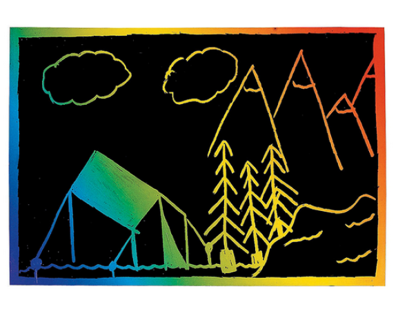 Fun for a group to reveal the rainbow of colors underneath, these scratch cards will let your imagination soar! They’re a complete blank, black slate and you just scratch with the provided tool to reveal your masterpiece below. You can use many different tools to reveal the design, items as simple as a coin or a dull pencil. These measure 5 1/4″ post card size with a blank back where you can add an address and mail your brilliant creation to a friend. Kit comes with 50 paper postcards and 12 tools, great for a group activity.