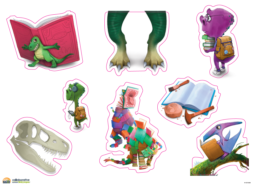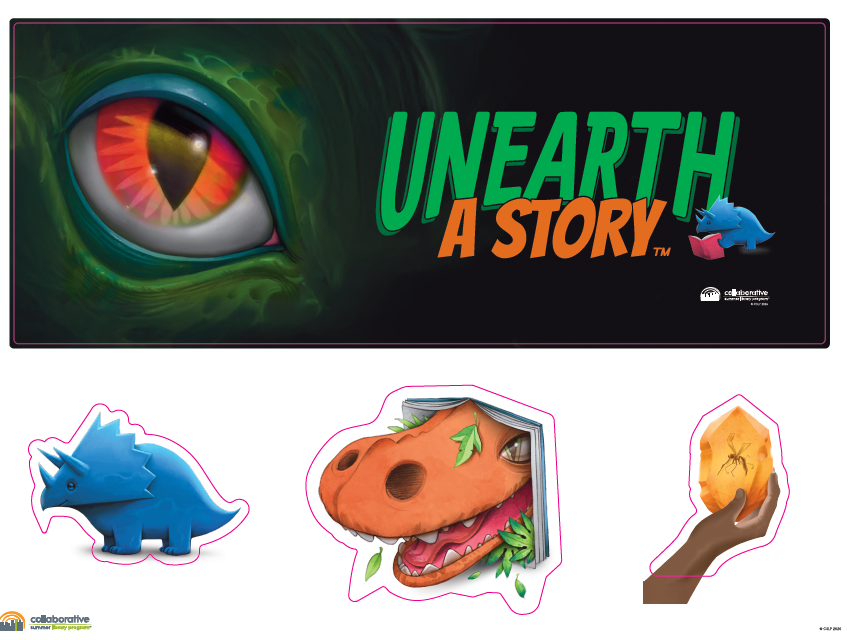 Themed Artwork: Includes dinosaurs, fossils, gems, and books designed to reflect the excitement of discovery and this year’s “Unearth a Story” theme.